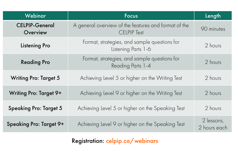 如需额外学习资料(如模拟题,自学课程等),可前往官网celpip.ca进行购买